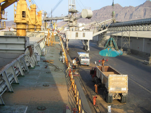 قامت الشركة بالاستثمار في أحدث جهاز لتفريغ البواخر و تم تركيب هذا الجهاز في ميناء المعلا بموجب اتفاقية مع مصلحة الموانئ اليمنية . فبعد أن تتم الموافقة على استيراد الشحنة والموافقة على المواصفات والتأكد من أنها مطابقة للمواصفات اليمنية والمقاييس يتم استيراد الشحنة وعند وصول الباخرة إلى الميناء يتم أخذ عينات من القمح وذلك لمقارنتها بما هو متفق عليه مسبقاً ..وبعد التأكد من ذلك يتم البدء في التفريغ بواسطة جهاز (المفرغ ) ( SHI PUNLOADER) والذي يعمل علي سحب القمح من الباخرة ( السفينة ) إلي السير المطاطي الناقل الأول الموازي للميناء والذي يبلغ طوله 169 متر ومنه إلى السير المطاطي الثاني والذي يبلغ طوله 263 متراً والذي يقوم بنقل وتوصيل القمح من السير الأول إلي قسم الصوامع وبرج التنظيف الأولي حيث تعمل أجهزة و معدات هذا البرج على تنظيف الحبوب تنظيفاً أولياً بإزالة بعض الشوائب الكبيرة ثم توزين هذه الكميات من خلال ميزان الكتروني ذو دقة عالية و من ثم يتم استقبال القمح بواسطة رافعة ضخمة تعمل على رفع الحبوب إلى أعلى الصوامع حيث يتم توزيع الكميات داخل صوامع التخزين بطريقة آلية.